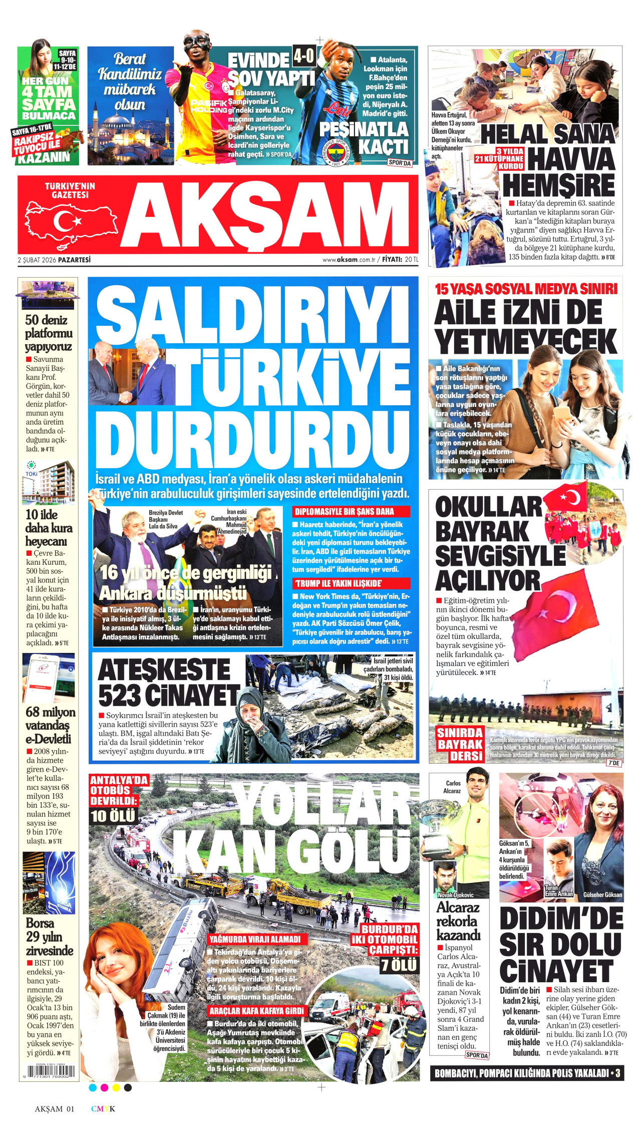 AKŞAM Gazetesi 02 Şubat 2026, Pazartesi Günü Manşeti